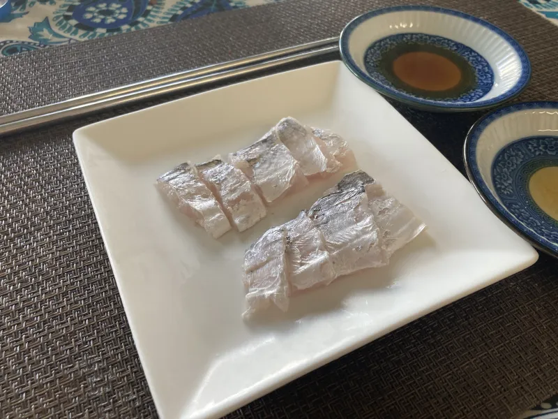 釣れたタチウオは刺し身とバター焼きで美味しくいただきました。
